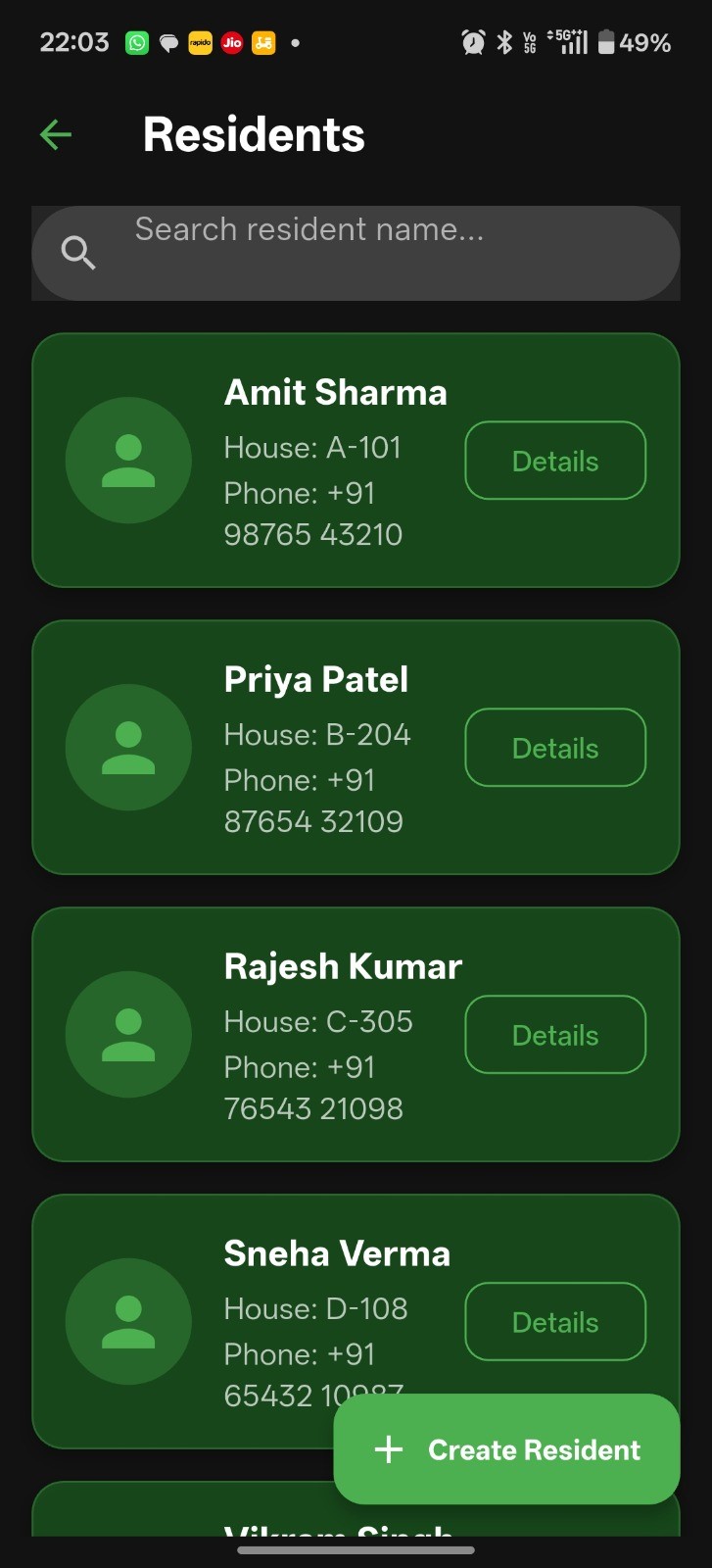 Maintain all residents and flat details easily.